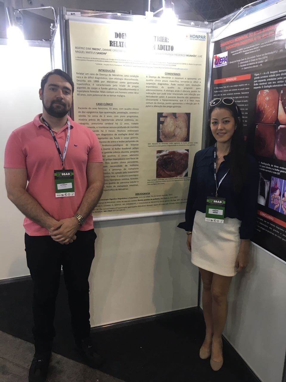 Os médicos residentes em Cirurgia Geral, Beatriz Eimi Yaedu e Luis Miguel Mateus Sandin, participaram no dia 29 de outubro da XV Semana Brasileira do Aparelho Digestivo. Apresentaram duas publicações de grande relevância ao meio clínico e acadêmico, "Colite Tuberculosa e Doença de Menetrier". O HONPAR parabeniza a estes residentes pelo amplo interesse em aprimorar seus conhecimentos.